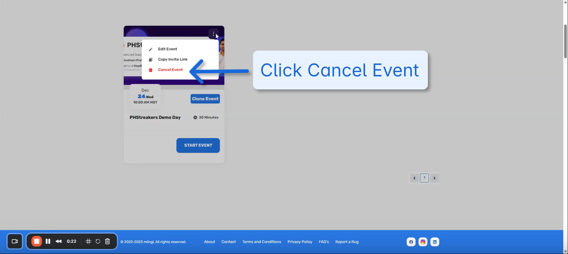 Go to app.miingl.com and sign in using the account that hosts the event.