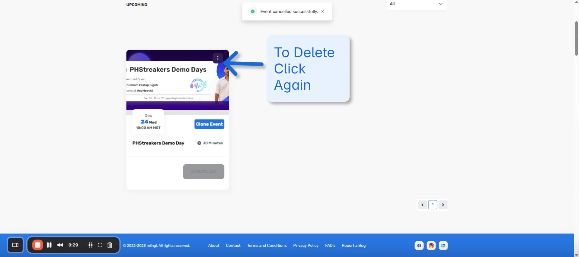 canceling the event in miingl does not automatically handle payments