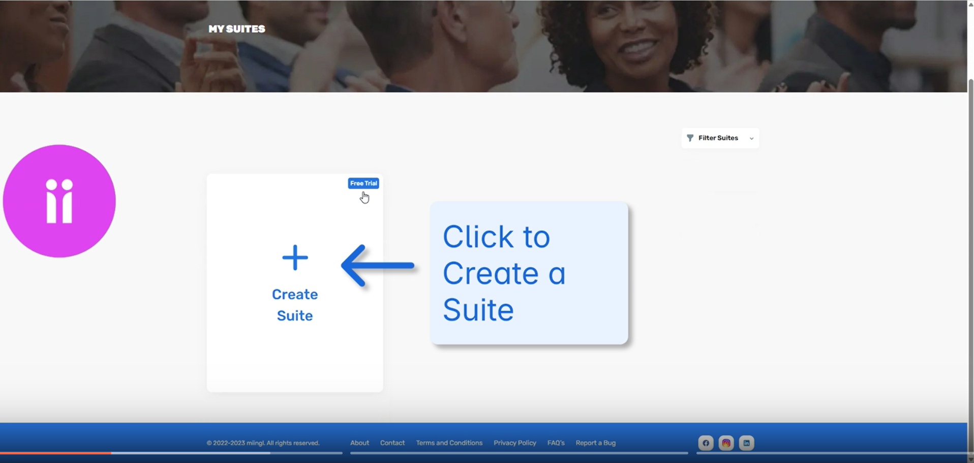 Your first suite includes a free trial period, so you can explore and invite your team without immediate charges.
